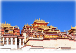 • Thăm tu viện Songzanlin (Tùng Tán Lâm) là tu viện Phật giáo Mật Tông Tây Tạng quan trọng và lớn nhất ở Vân Nam, Trung Quốc. Songzanlin được đặt trong một cảnh quan tuyệt đẹp ở độ cao hơn 3.300m cách Shangrila 5km. Tu viện này do vị Đạt Lai Lạt Ma thứ 5 xây dựng năm 1679 theo nguyên mẫu thu nhỏ của cung điện Potala (Tây Tạng) và được hoàn thành sau 2 năm xây dựng. Vào thời thịnh vượng nhất, nơi đây tập trung đến cả ngàn tăng sĩ.