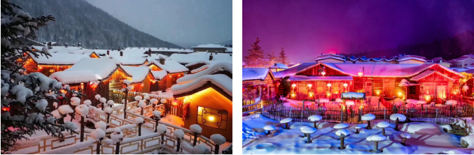 Làng Tuyết Hương lọt vào danh sách những ngôi làng Tuyết đẹp nhất Trung Hoa và Châu Á. Những căn nhà và khách sạn được tuyết phủ một lớp tuyết trắng mịn như là lớp kem trên ly trà sữa sủi bọt, nếu đến đây qua đêm trong những căn nhà tuyết chắc chắn sẽ là một kỷ niệm khó quên, bạn không cần mơ mà vẫn sống trong thế giới cổ tích..