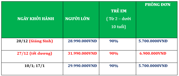 GIÁ TOUR TRỌN GÓI: VNĐ/KHÁCH