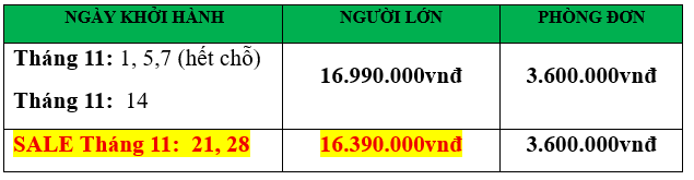 GIÁ TOUR TRỌN GÓI: VNĐ / KHÁCH