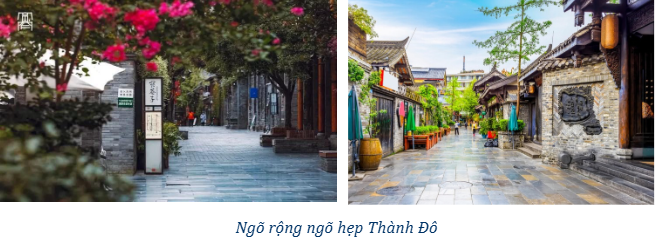 Sau khi thỏa thích chụp hình tại Cổ trấn Lạc Đới , quý khách di chuyển đến tham quan Ngõ Rộng Ngõ Hẹp. Ngõ Rộng Ngõ Hẹp nằm ở Thành Đô và là một trong những điểm du lịch đô thị tiêu biểu nhất ở Trung Quốc. Nơi đây có lịch sử lâu đời, văn hóa độc đáo và là khu du lịch toàn diện tích hợp du lịch, văn hóa và thương mại. Ngõ Rộng Ngõ Hẹp nằm gần phố Changshun ở quận Qingyang, thành phố Thành Đô, tỉnh Tứ Xuyên. Nó bao gồm Ngõ Kuan, Ngõ hẹp và Ngõ Jing được bố trí song song. Có tổng chiều dài khoảng 500 mét. Chúng đều là những khoảng sân cổ được làm bằng gạch chàm. Cùng với Đền Daci và Tu viện Wenshu, được biết đến là ba khối thành phố lịch sử và văn hóa được bảo vệ ở Thành Đô.