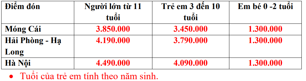 em vui lòng thanh toán 100% giá tour. Trong trường hợp chỉ có 1 khách (người lớn) đi kèm 1 trẻ